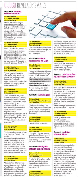 O semanário Expresso revela este sábado uma conversa entre Luís Filipe Vieira e Paulo Gonçalves, além de mais emails trocados com o antigo delegado da Liga, Nuno Cabral, com vista a baixar a nota do árbitro Rui Costa.